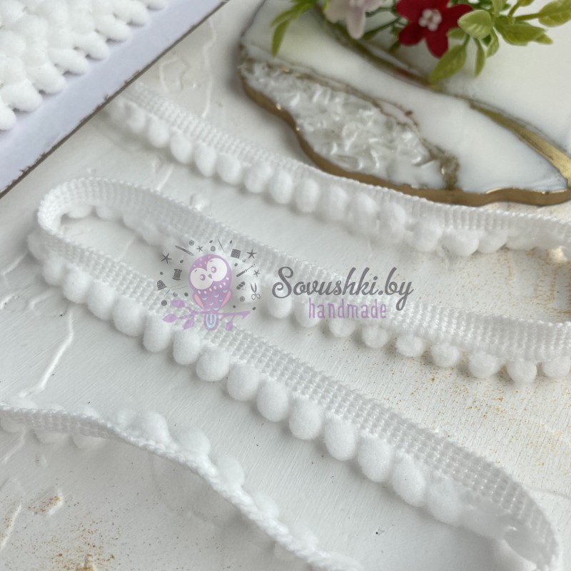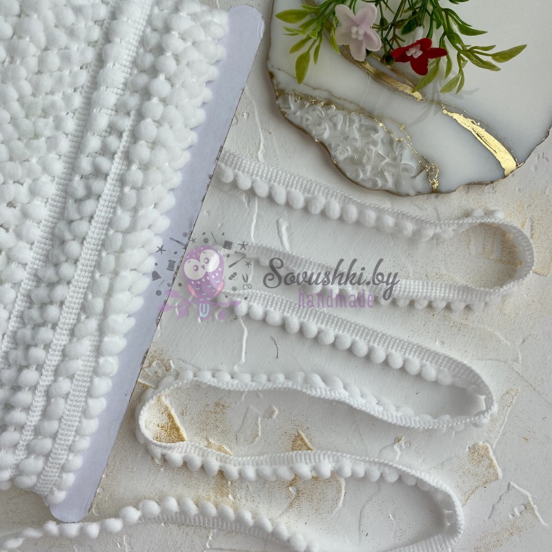 Тесьма отделочная с маленькими помпонами, белый