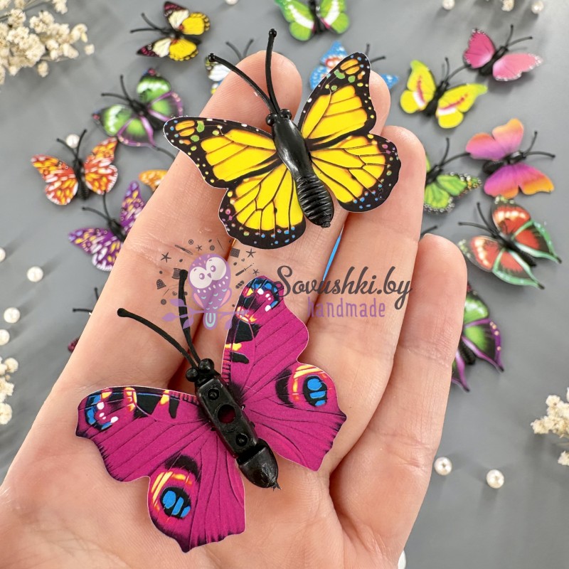 > Обратите внимание: В комплекте идет 10 бабочек разных расцветок. Конкретные цвета в наборе могут отличаться от представленных на фото, так как комплектуются случайным образом.