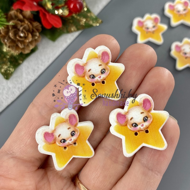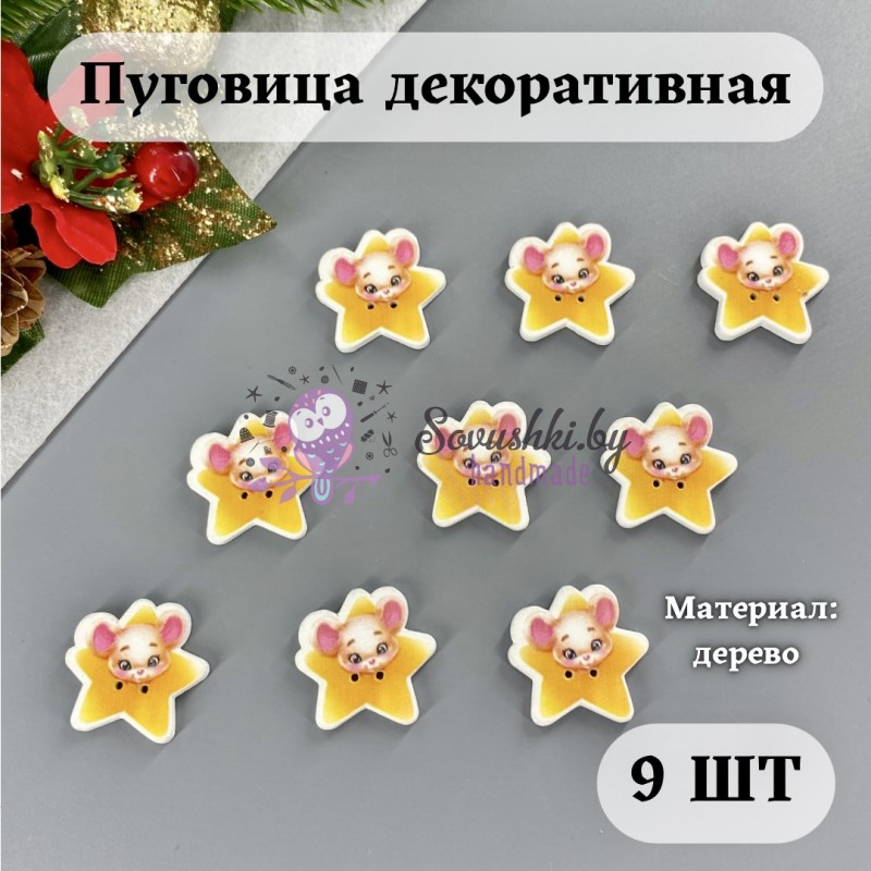 Пуговица декоративная "Мышонок и звездочка " (9 шт)