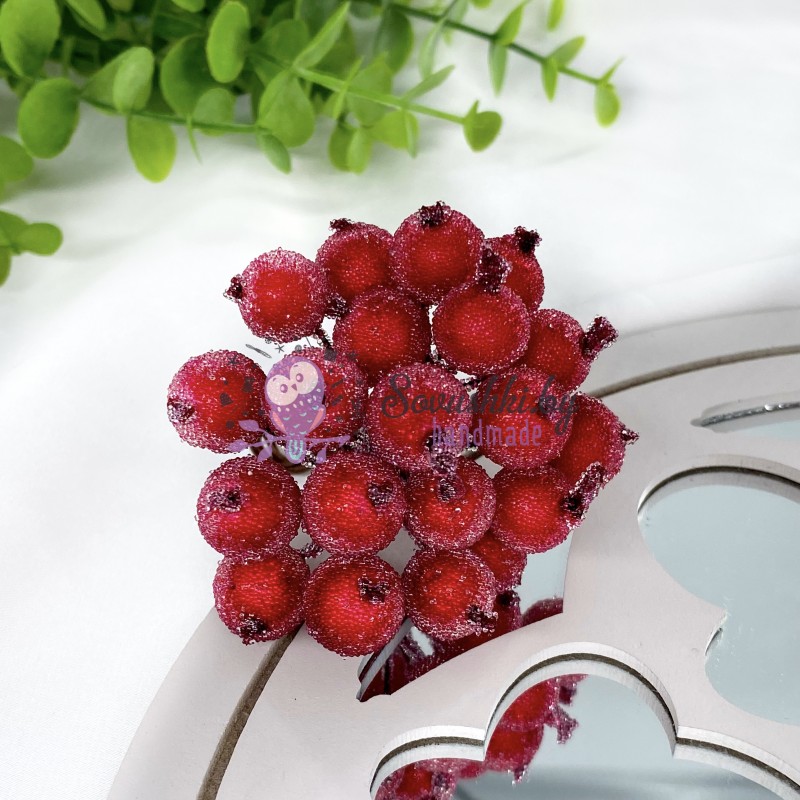 Декоративные сахарные ягоды на проволоке (пучок 20 шт), рубиново-красные