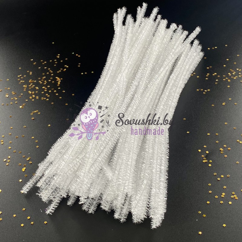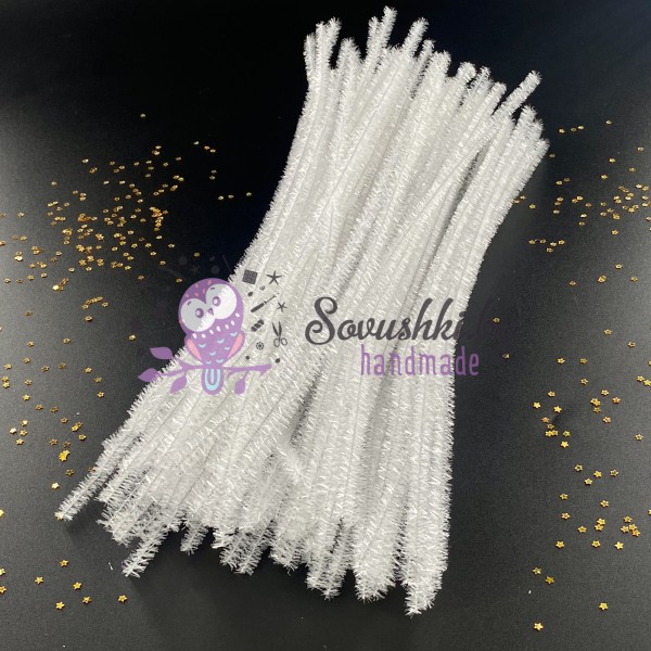 Синельная проволока (шенил) 30 см, белый металлик (10 шт)