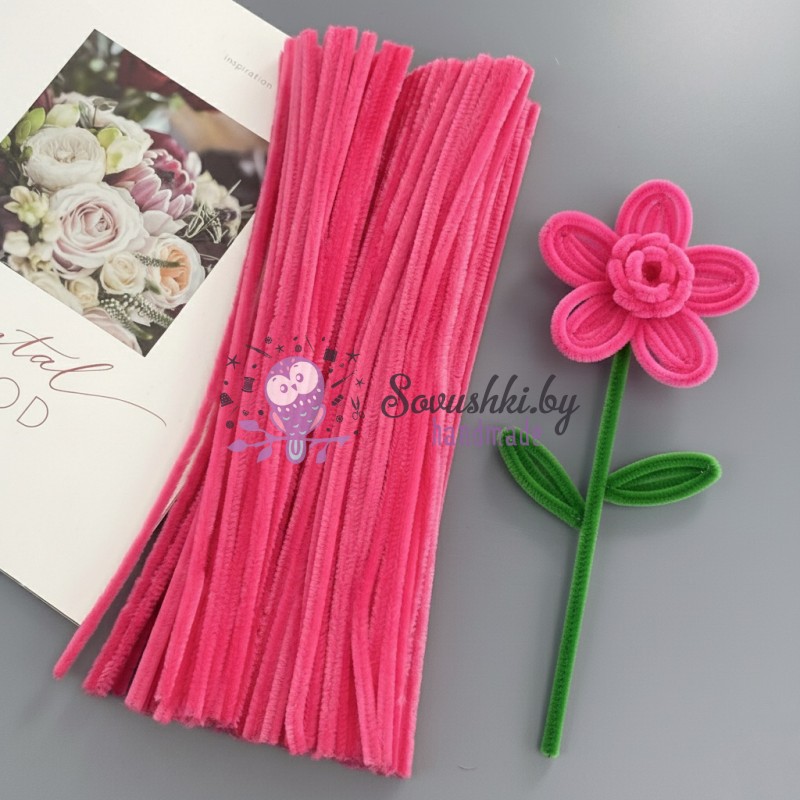 Синельная проволока (шенил) 30 см, темно-розовый (55 шт)